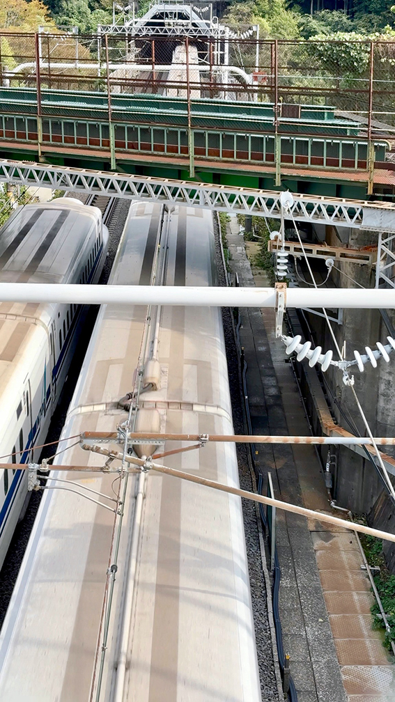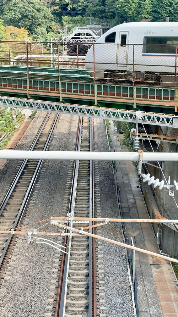 ねらいは,下りドクターが山中トンネルから飛びだし,東海道本線をアンダーパスする絵.
