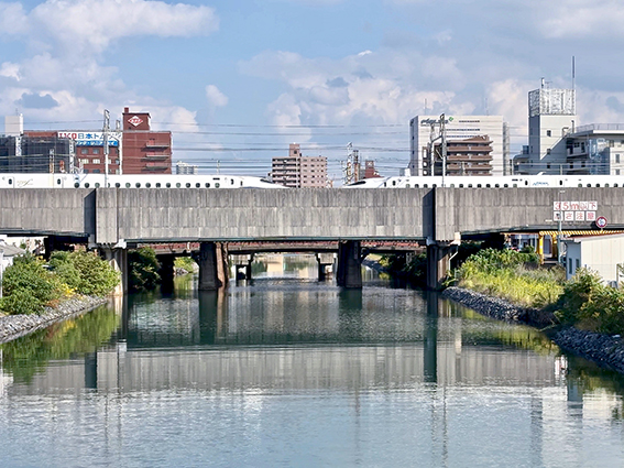 しかし,どんなフレームになるのかきっちりとは予想がつかなかったことと,新幹線中川運河橋梁は,名駅通り,名鉄名古屋本線,JR中央線とJR東海道線の4橋梁を挾んで反対側.しかも今日は下りドクターで,撮影ポイントから最も遠くなるため,どんな絵になるか一抹の不安.