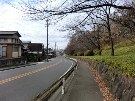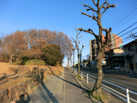猪高緑地の西側:道路の左側は名東区の住宅街.春になると美しい桜の並木道となります.