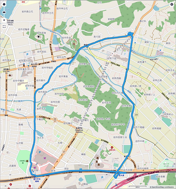 帰り道,梅雨前の大移動なのか,蟻の大行列が少なくとも30 m以上続いているのに気付く.スタートとゴールを確かめようと,下を見てウロウロしていて,顔を上げるとミニパトの婦警さんと目が合ってしまった.それで,探索は突然終わることに.(11100 歩)