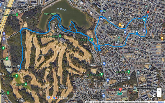 初めは牧野池を一周するつもりだったが,12年前に訪れた羽白美衣龍神社(今日訪れたら白美龍神社となっていた)をふと思い出し,アップダウンのきつい尾根すじを南下.