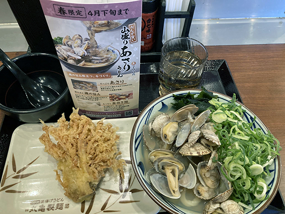 昼食は、ちょっと寄り道をして、アサリうどん。美味い。春だねーーー。