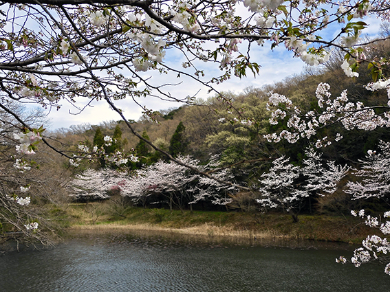 水面に映る桜も撮したかったが,風が強くて残念.(16300 歩)