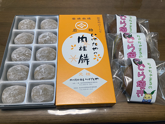 お接待の飴,梅干しや手作りの飾りをいただいた.