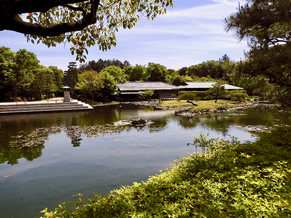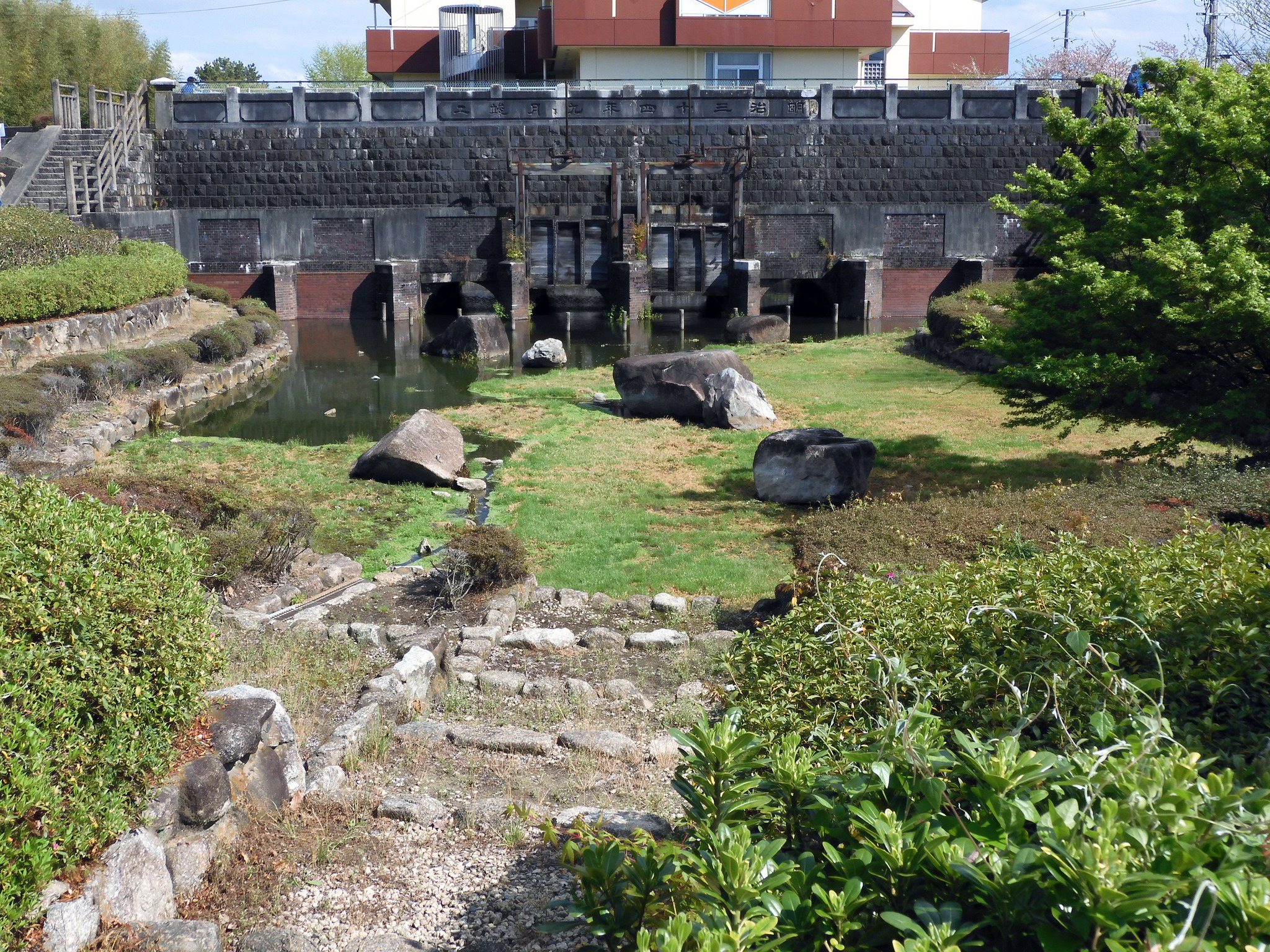 御嶽山,木曽三川と伊勢湾を主なモチーフにした池泉回遊式庭園.汐の満干まで演出してある.