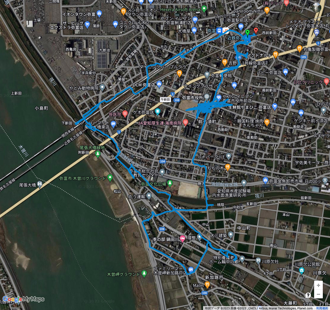 近鉄弥富駅がスタートとゴールの9.9 km.