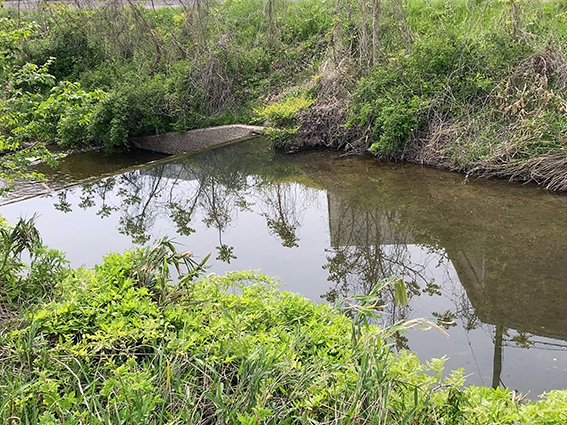 さらに東へ歩き,丘陵地内にある岩藤新池とそこに流入する谷筋を訪れた.ここはかつて鬼板を見つけたところ.