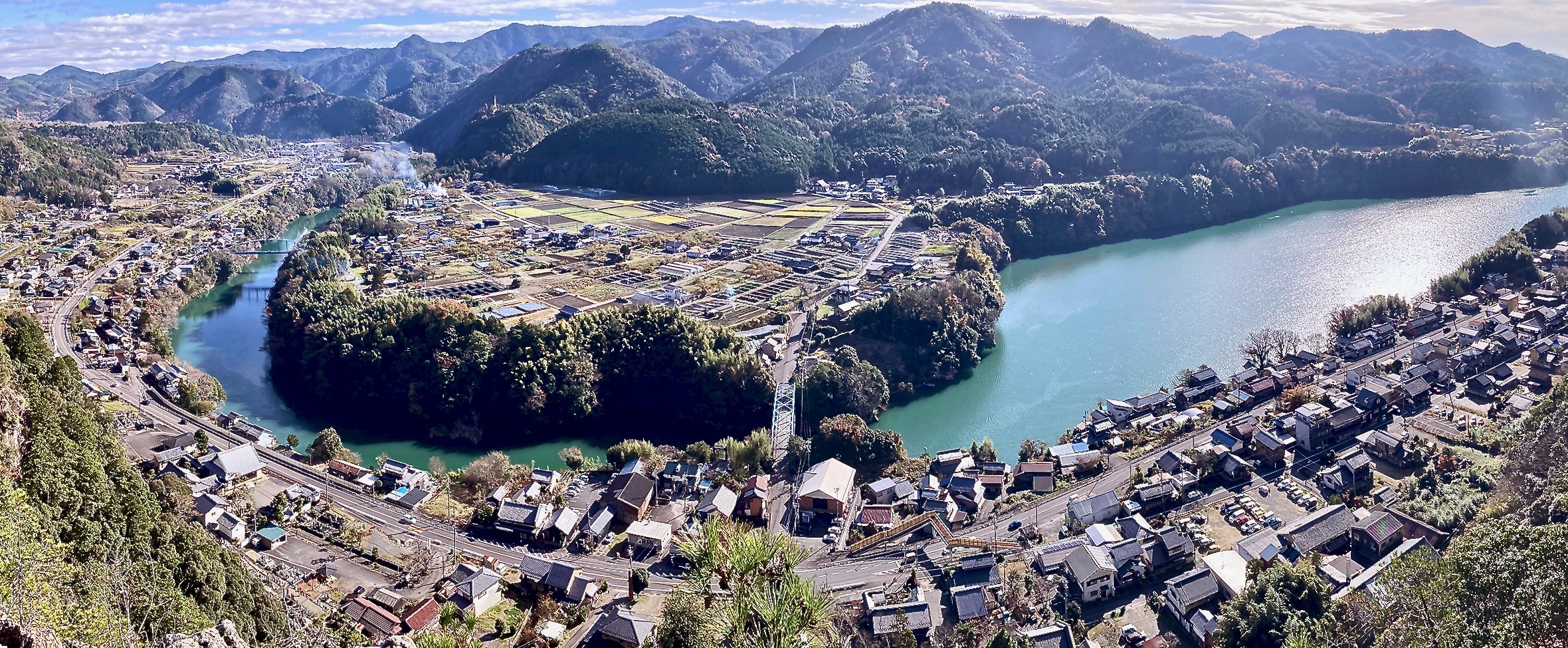Grand CanyonのHorseshoe Bendにその地形が似ていることから,岐阜のグランド キャニオンと呼ばれるようになった加茂郡川辺町の遠見山(YAMAPの口コミから).