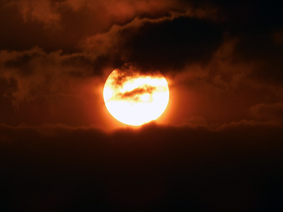 山の端に隠れようとする夕陽が美しかった.(10600 歩)
