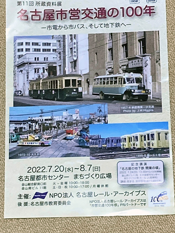 今年は,名古屋市交通100周年.それを記念して金山駅近くで,名古屋レール・アーカイブスさん主催の「名古屋市営交通の100年—市電から市バス,そして地下鉄へ—」を見学.