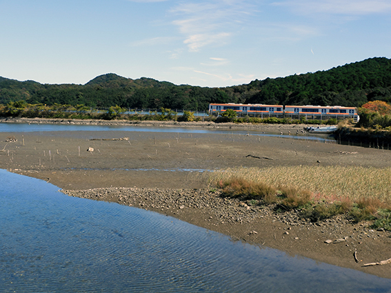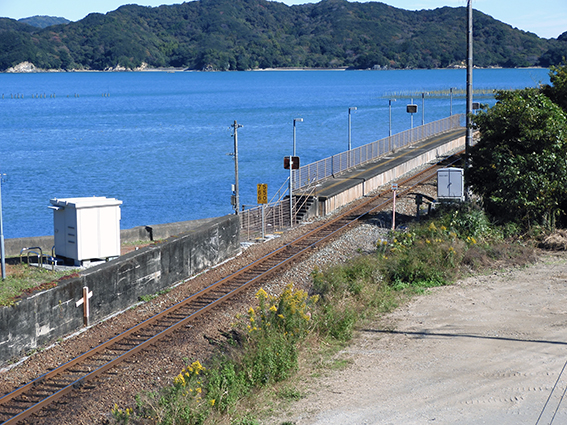 この築堤のことを調べていて,JR参宮線の一部は,築堤で海上を通過していることを知った.
