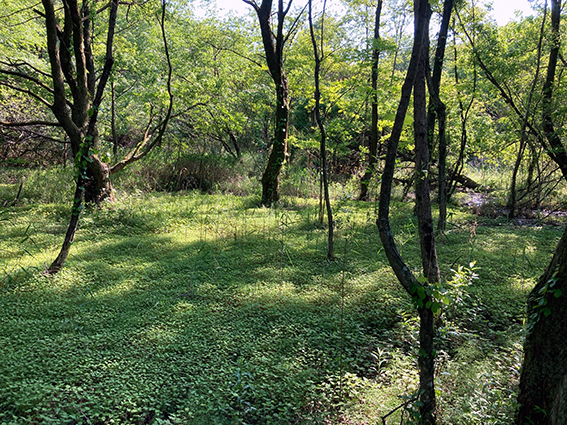 そして,窪地の奥は湿地となっており,名前は知らないが湿原植物や鬼板が見られる.
