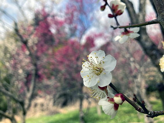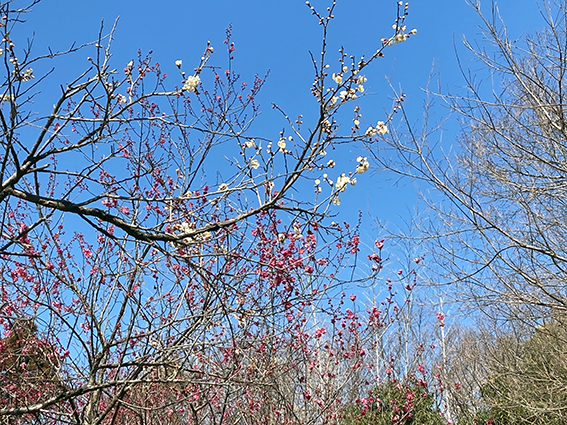 途中にある,白梅紅梅はやっと5分咲きくらい(木によっては,蕾ふくらむ程度).