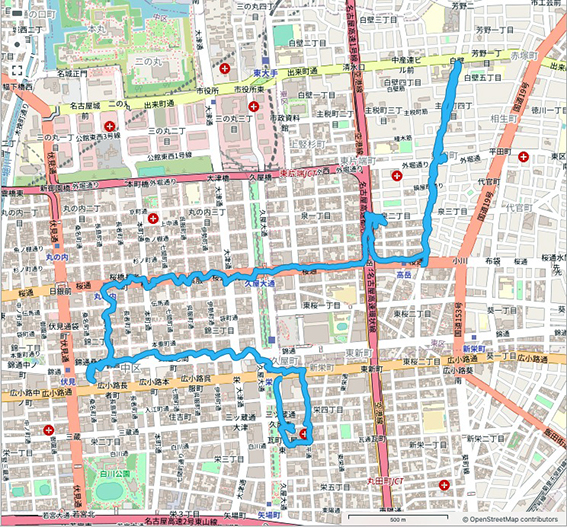 結局,今日の散歩は,地下鉄高岳駅を出発し,久屋大通駅→丸の内駅→伏見駅を通過し栄駅まで.(14200歩)