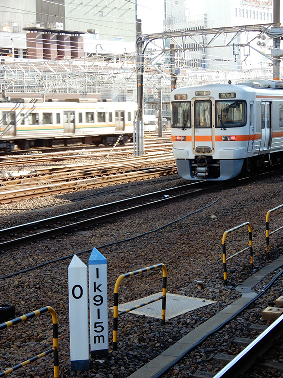 JR名古屋駅13番ホームから写したとき0キロポストに隠れていた.やはり重要なものを見落としていたのだ.