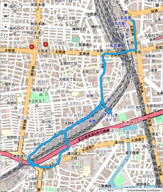 そんな訳で,隣のささしまライブ駅まで130円乗車.そこから散歩.