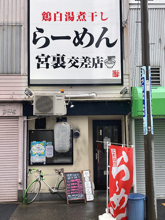 めざした「三九餃子」近くの角を何気なく廻ると,「らーめん宮裏交差店」.