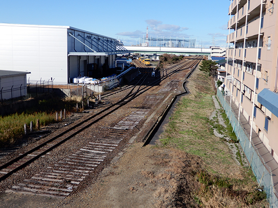 2.南方貨物線(左),東海道新幹線(中央),名鉄常滑線(右)
