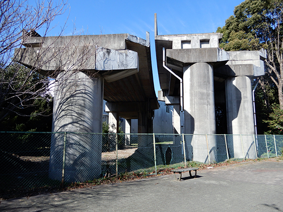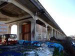 南方貨物線の高架橋は,道路,運河や鉄道と交差するたびに断絶.途中は東海道新幹線と併走.両者の違いに..... それでも事務所,倉庫,駐車場や太陽光発電パネルの置き場所などになって頑張っていた.