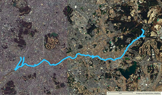 日進市東部の三ヶ峯上池・下池を水源として公式の延長距離は 22.7 kmの二級河川.