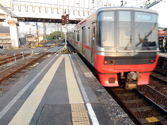西枇杷島駅と庄内川橋梁の間で,下り名古屋本線と下り犬山線が分岐.そして,西枇杷島駅の東で上り名古屋本線と下り犬山線を結ぶ連絡線が分岐し,綺麗なトライアングルを作っている.各頂点(分岐点)を,踏切の遮断機が上がる僅かな時間を利用して写してみた.これもまた,なんと物好きな.