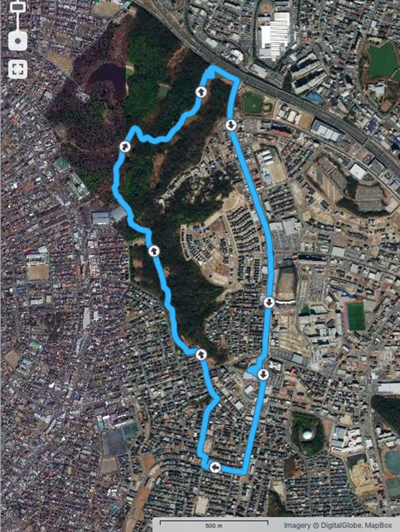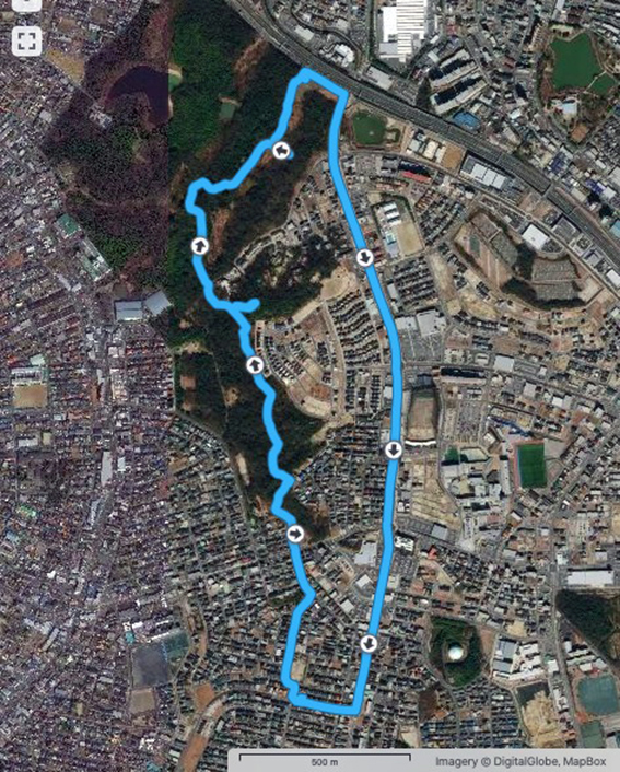 このコースの南側入り口近くにある親鸞山は標高は111mで,名古屋市内で2番目に高い山頂.ただ,尾根の一部であり麓の標高が70〜80m あるため,山に登ったという気持ちにはなりにくい.