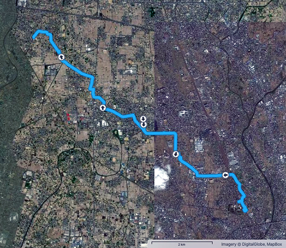 これまで,宮宿→名古屋宿→清州宿と歩いたので,今日は清州宿→稲葉宿→萩原宿の入り口(JR清州駅から名鉄萩原駅)までの15.8 km.
