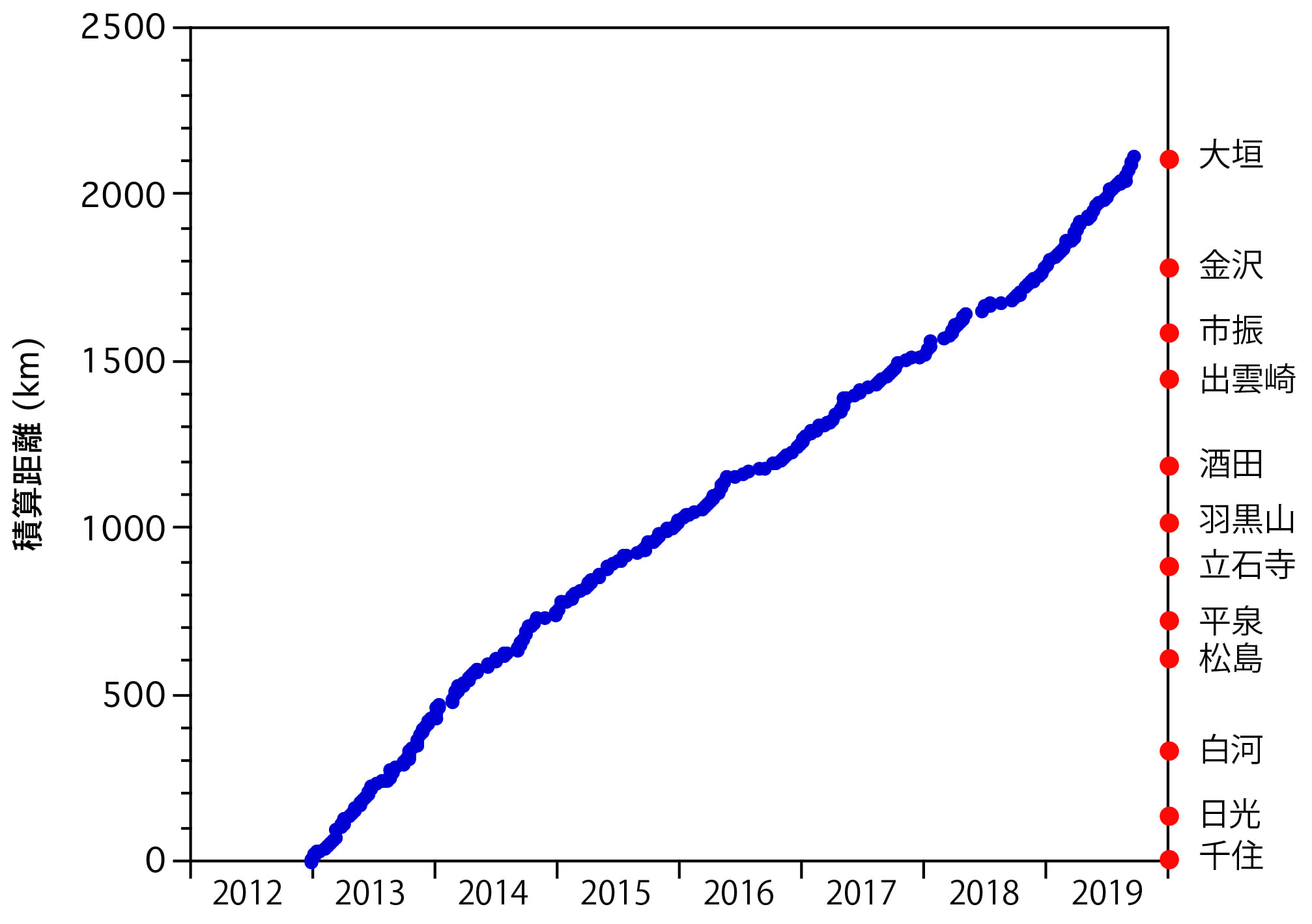 主に週末散歩の距離を積算してたどった,仮想「おくのほそ道」の旅をまとめてみました.