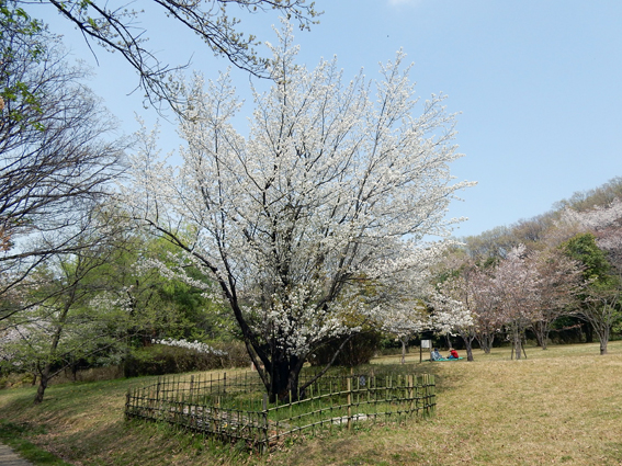 ご近所に名残の桜はないかと調べて,東谷山フルーツパークへ.