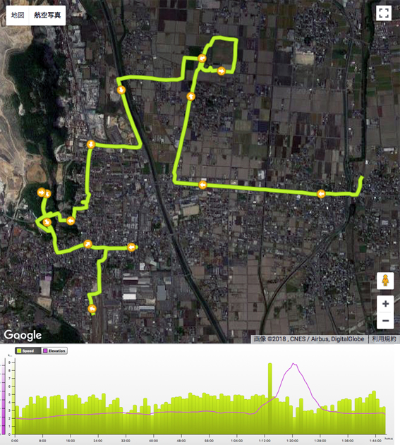 これだけだと8kmのはずですが,最寄りの名鉄牛田駅をスタート,前後駅をゴールとしたのと,いつものことながらの寄り道で,結局15.3 kmの散歩となりました.久しぶりに良く歩きました.