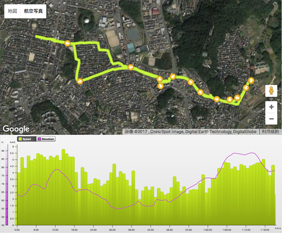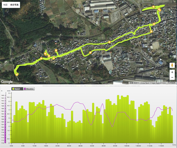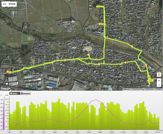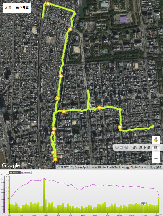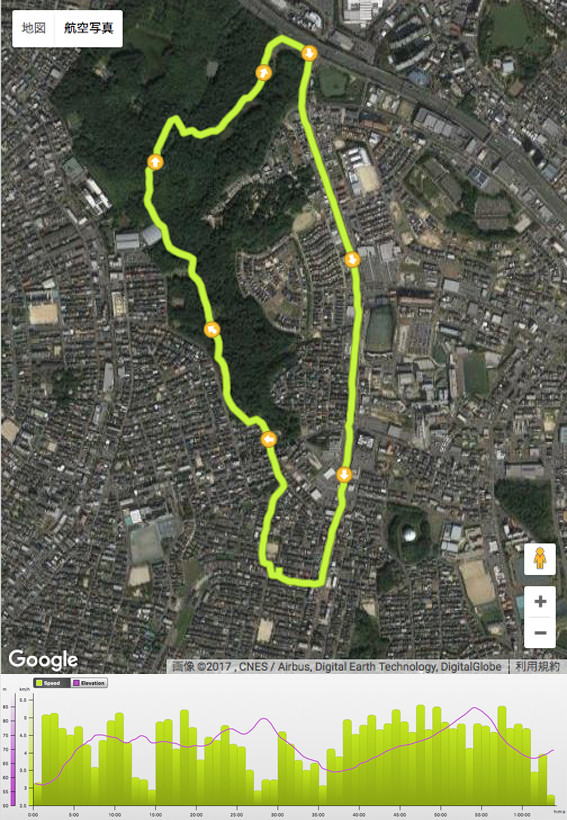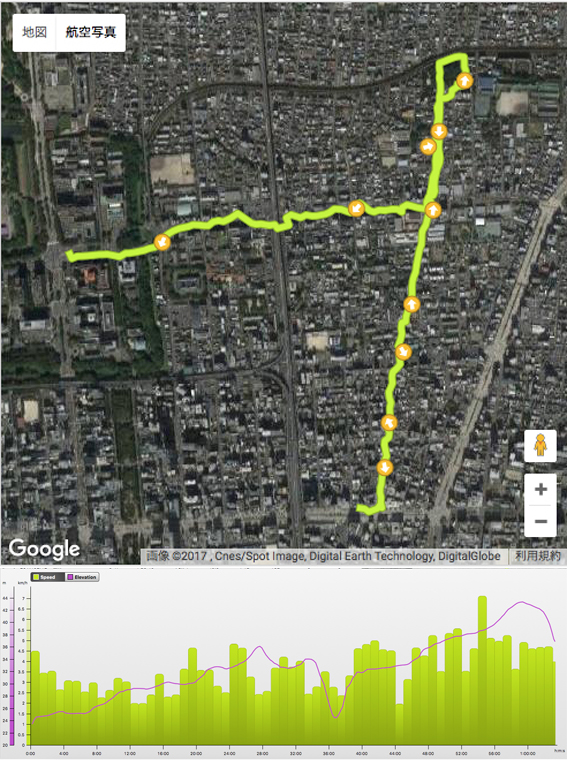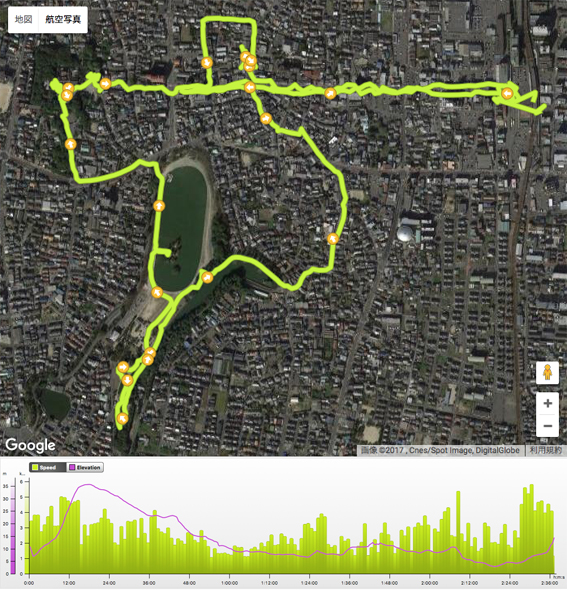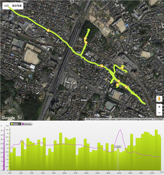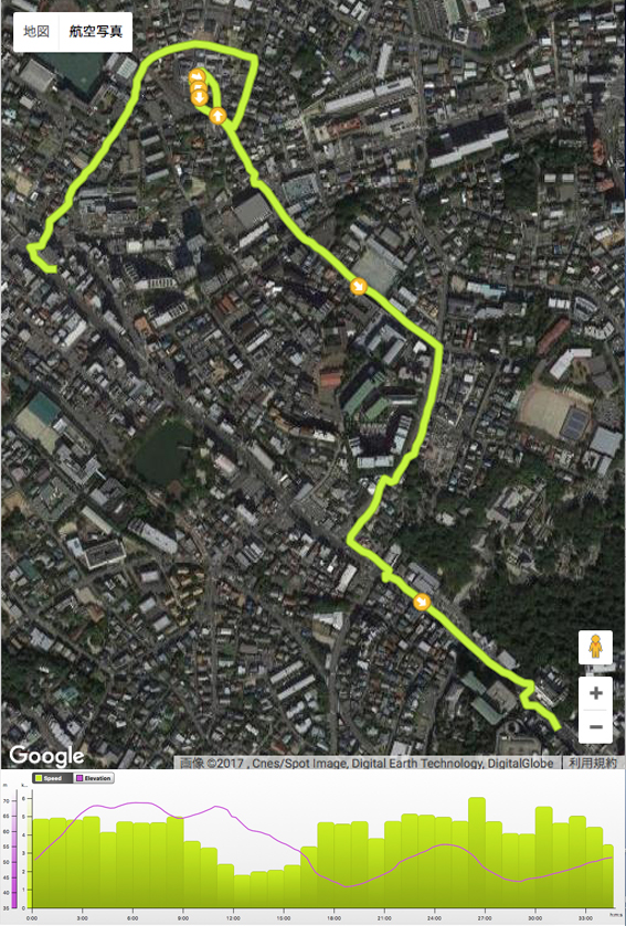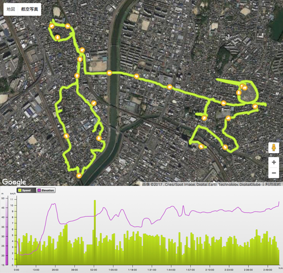途中でGPSのログがとれなくなってしまった.そんな訳で,歩行記録は3.3 km.