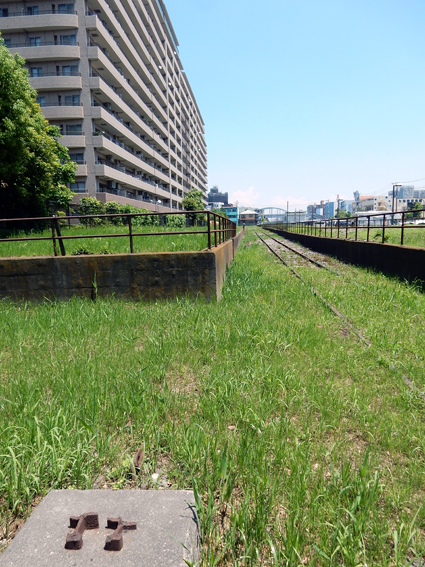 次は,東京港湾局専用線の跡.100 m程度だけがポツンと残る.不思議な光景.木場駅から南へ.