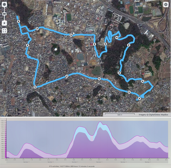 これで,名古屋市の16区がそれぞれ設定したコースを完歩.残すはコース番号50の距離が長いチャレンジコースのみ.(13400)