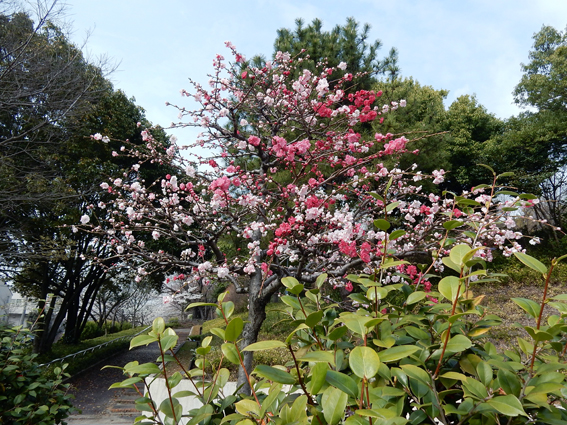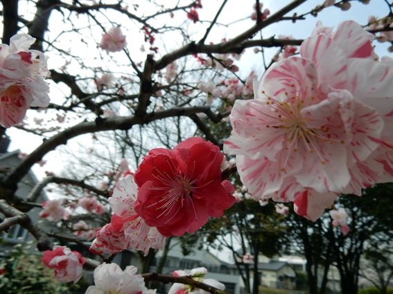 猪高緑地南の源平しだれ桃も満開近し.(15200)