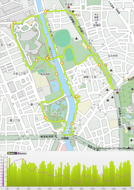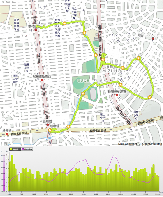 瑞穂区のコースは,瑞穂区一万歩コース (2012/12/08),山崎川散策路コース (2015/12/23) 同様に,どうしても山崎川沿いが中心となってしまいます.