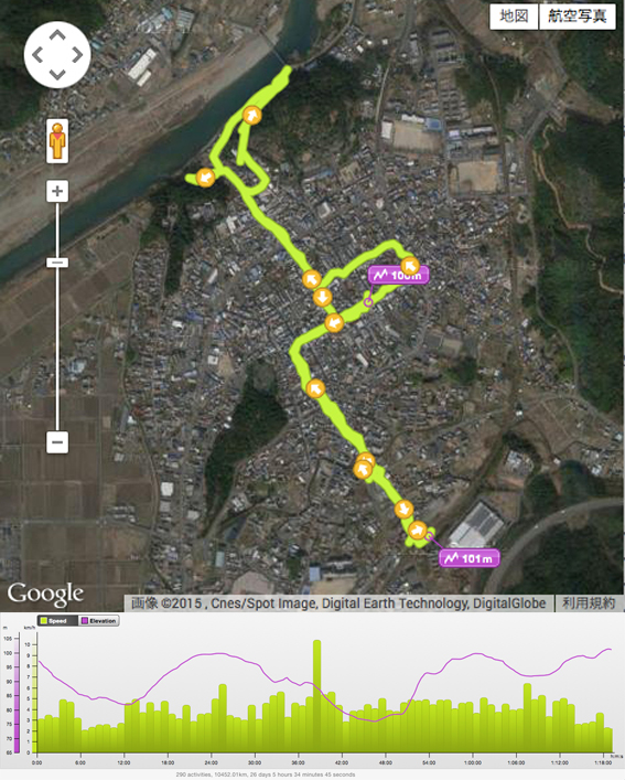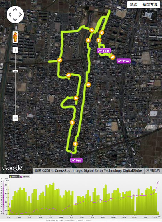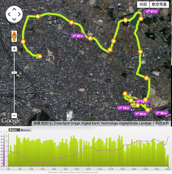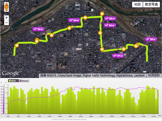 ところで,コースの途中に酒蔵があり「ほろ酔いコース」になったらしいと気付いたのは,帰宅してから.なんと迂闊だったことか.調べてみると,酒蔵のすぐ横を通過していた.残念.薫りを感じられなかったのはまだ風邪が治っていない所為なのか.(14200)