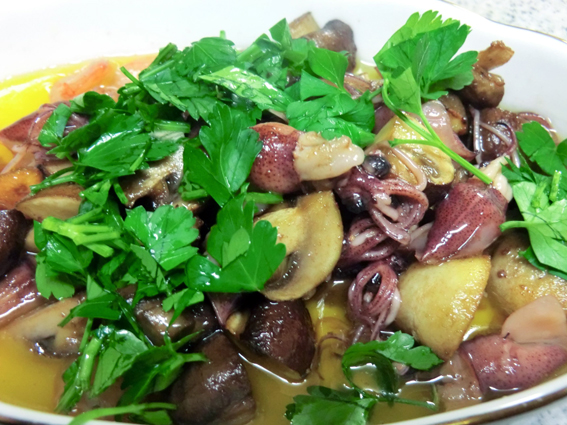つくりすぎてもと思って,ホタルイカとマッシュルームを少し残しておいたのですが,予想外に好評でワイングラスを片手に追加調理.結局これらもめでたく消費されました.(11600)