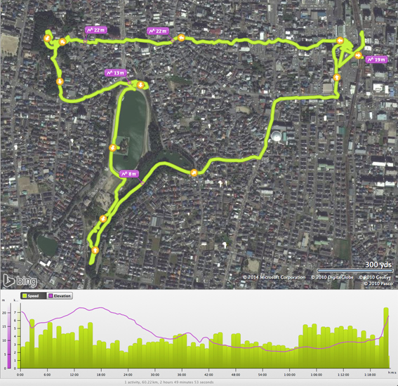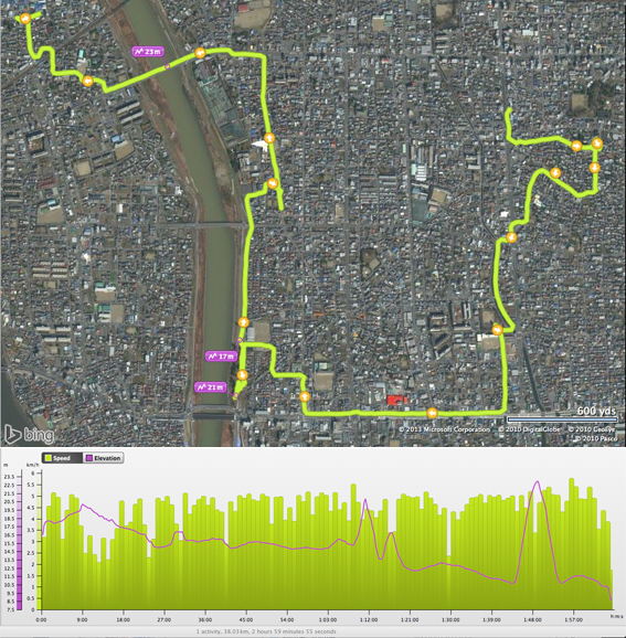 途中,寄り道をしたり道を間違えたりして,彷徨った実歩行距離は,15.2 km.空腹を抱えての最近にない長距離散歩で,多少は脂肪が消費されたか?(22300)