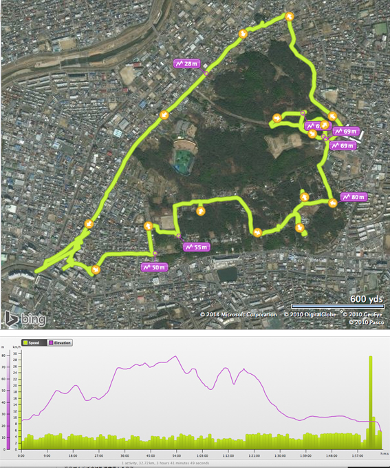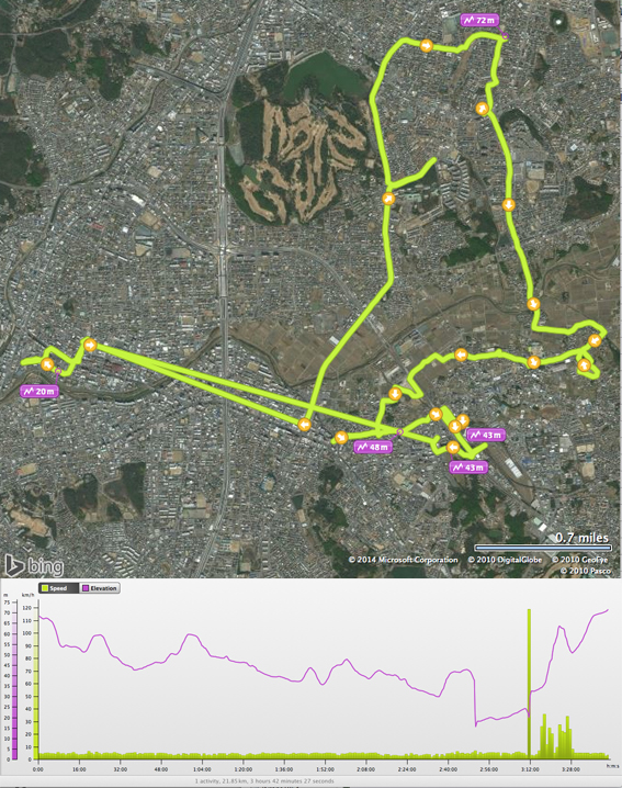 また,オアシスの森では,コース案内にスケールが入っておらず,細い山道がいたるところに通っていて,そのために完全に目測を誤りコースを完歩できず(Geologist の端くれとして恥ずかしい).