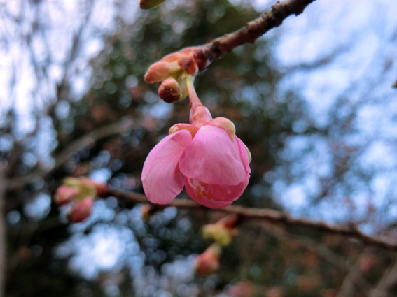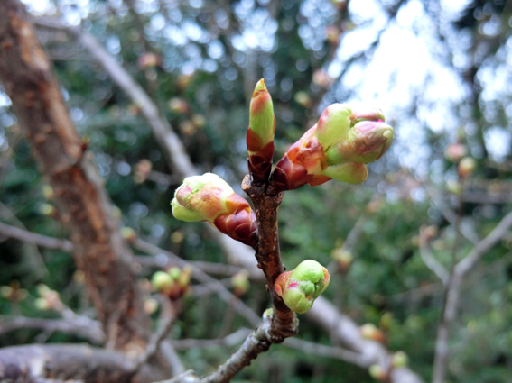河津桜は,つぼみが少しふくらんできました.