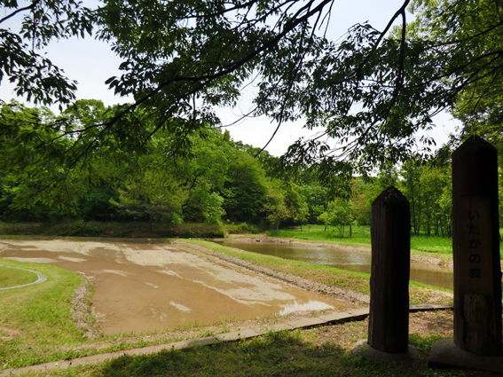 井堀の棚田は,水が張られ,少しずつ春の装い.反対側にあるのは「おんか山」.「おんか」とは「うんか」のこと.昔このあたりは猪高村.村内を廻って,ここで虫送り(おんか祭り)がされたそうです.今日初めて頂上まで登ってみました.