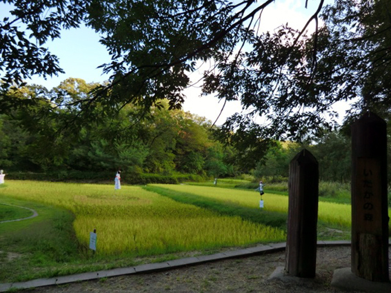 井堀の棚田にも実りの秋が近づき,今年も案山子のお出まし.
