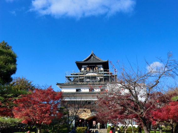木曽川沿いを戻って,次に犬山城(別名白帝城)へ.高所恐怖症の私は,急でしかも多くの人が上り下りしたためにつるつるになっている階段を,おそるおそる登って天守閣へ.美濃国金華山山頂にある岐阜城も,遠くかすかに眺めることができました.(16700)