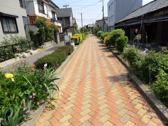 コースの大半は,中井筋緑地と呼ばれており,かつての惣兵衛川を暗渠として整備したもの.周囲は昔ながらの家並み.