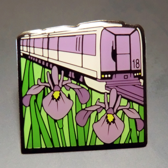 参加賞は,リニモとカキツバタがデザインされたピンバッチ.