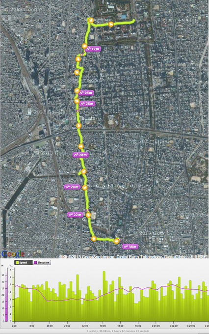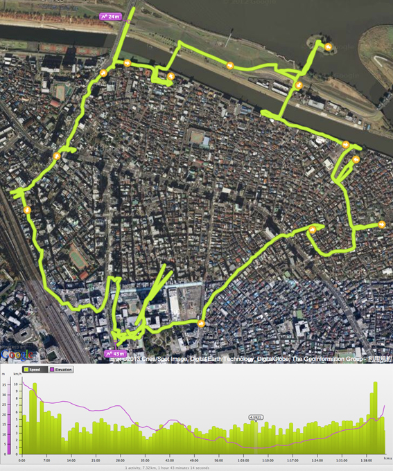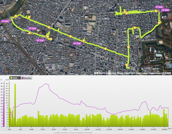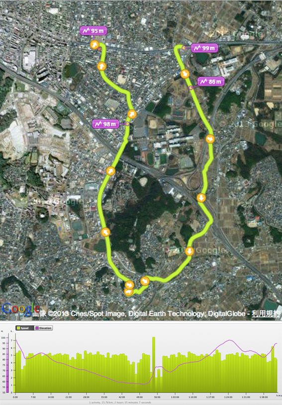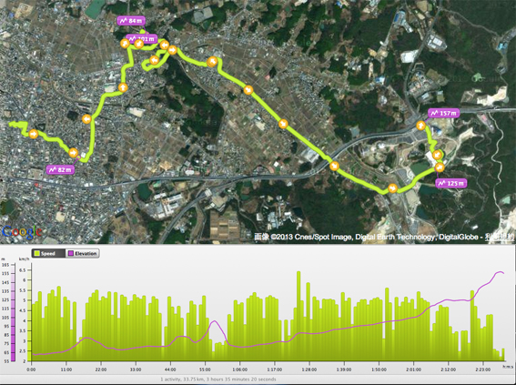 コース距離は約 7 kmとなっていましたが,前回に続いて GPSの記録はとれず(今回はスイッチは入れたもののログの保存を忘れたらしい).という訳で,仮想「奥の細道」は前進できず.(14600)