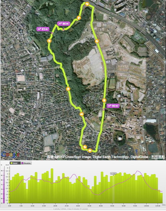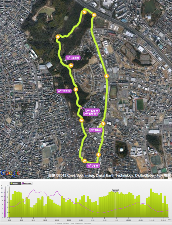 地下鉄「茶屋ヶ坂駅」がスタートとゴールの周回コース.(11700)