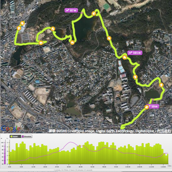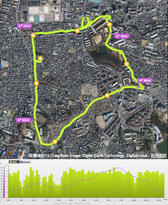 地下鉄庄内緑地公園がスタートとゴールの周回コース.
