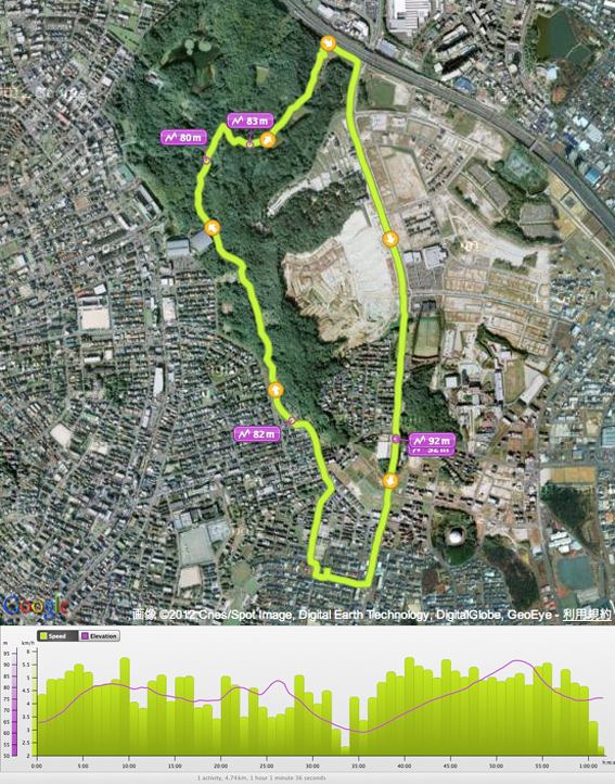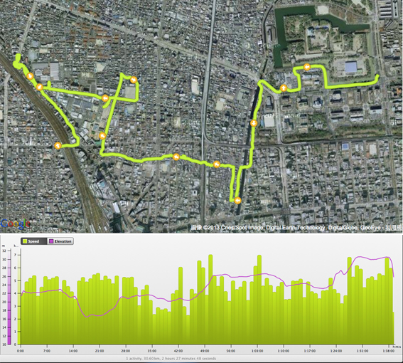 偶然ですが,仮想「東海道五十三次」を完歩した日のルートが,今回と似たルート.