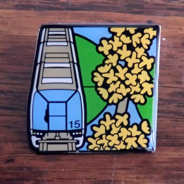 参加賞は,リニモとキンモクセイがデザインされたピンバッチ.(16800)